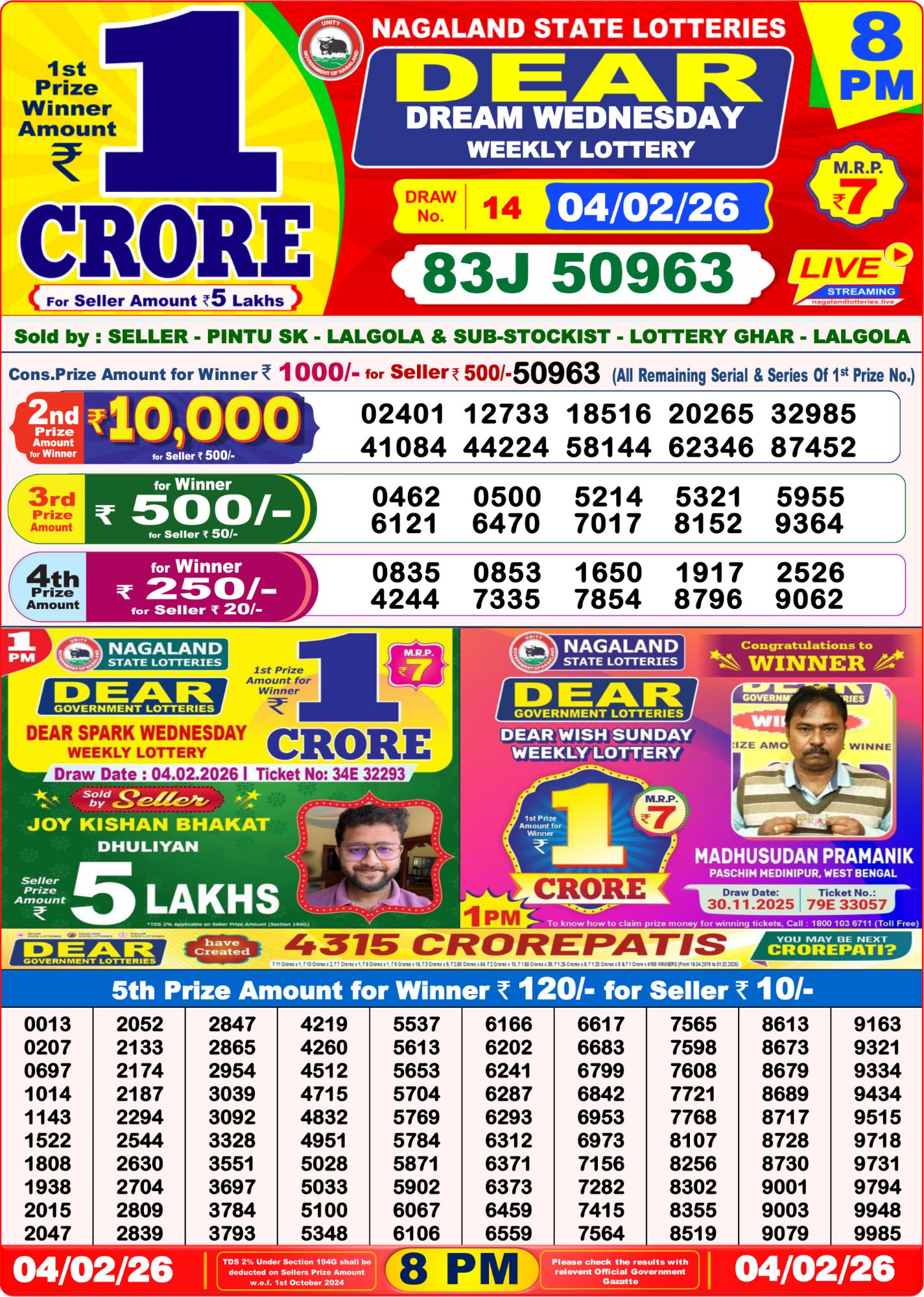 Dear Lottery 04 02 2026 Result