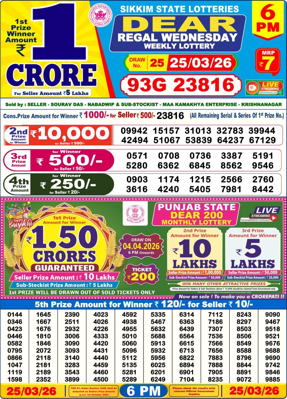 📢 Draw In-Motion: The 6 PM result for Dear Regal Weekly Lottery (25/03/26) is being drawn live. Stay here for the Dear Lottery Result.
