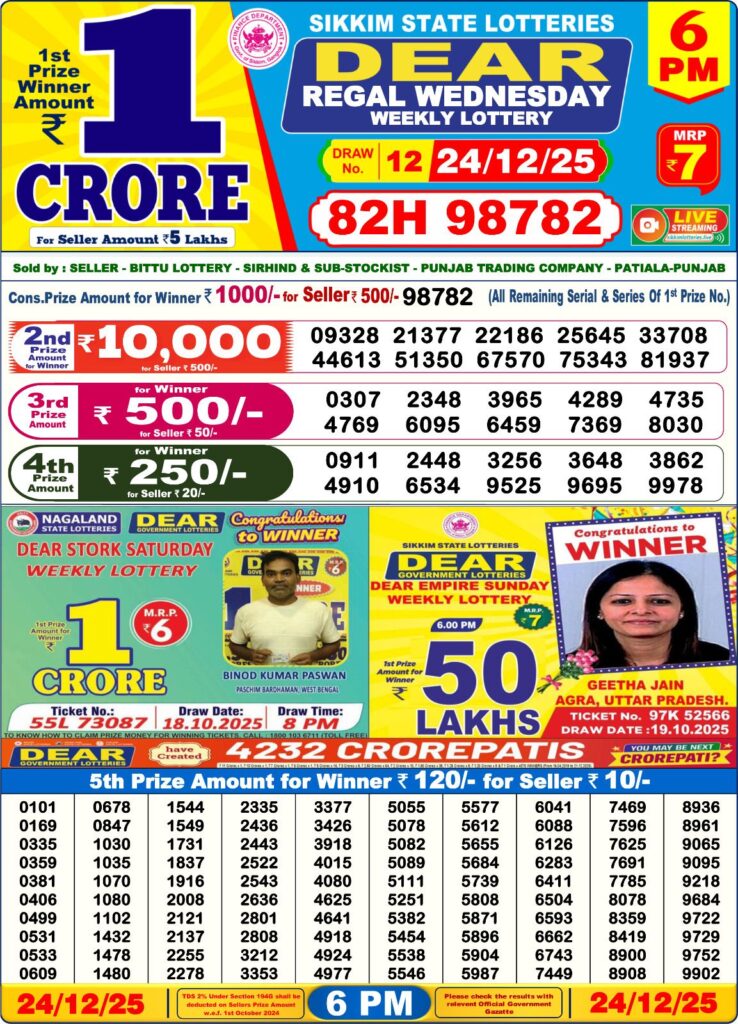 Dear Lottery Result Today – 24 December 2025 | Live Updates