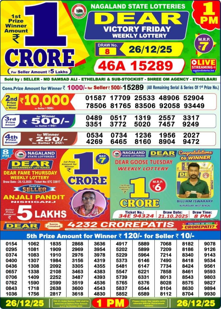 Dear Lottery Result Today – 26 December 2025 | Live Updates